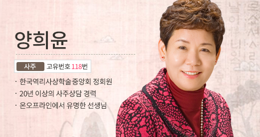 신규 상담사 "[사주] 양희윤 118번 " 선생님이 새롭게 등록되었습니다.