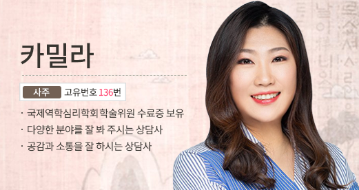 신규 상담사 "[사주] 카밀라 136번 " 선생님이 새롭게 등록되었습니다.
