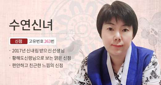 신규 상담사 "[신점] 수연신녀 263번" 선생님이 새롭게 등록되었습니다.