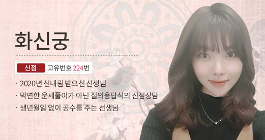 신규 상담사 "[신점] 화신궁 224번 " 선생님이 새롭게 등록되었습니다.