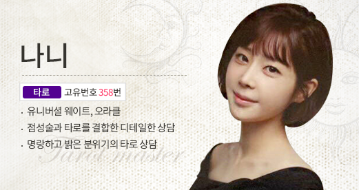 신규 상담사 "[타로] 나니 358번" 선생님이 새롭게 등록되었습니다.