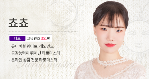 신규 상담사 "[타로] 쵸쵸 351번" 선생님이 새롭게 등록되었습니다.