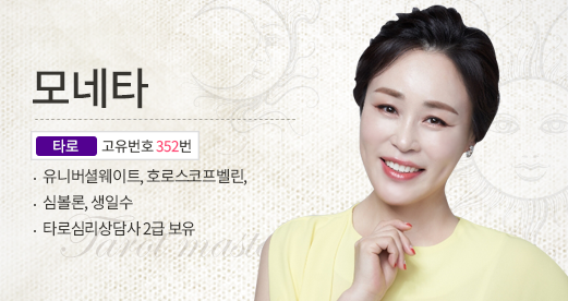 신규 상담사 "[타로] 모네타 352번" 선생님이 새롭게 등록되었습니다.